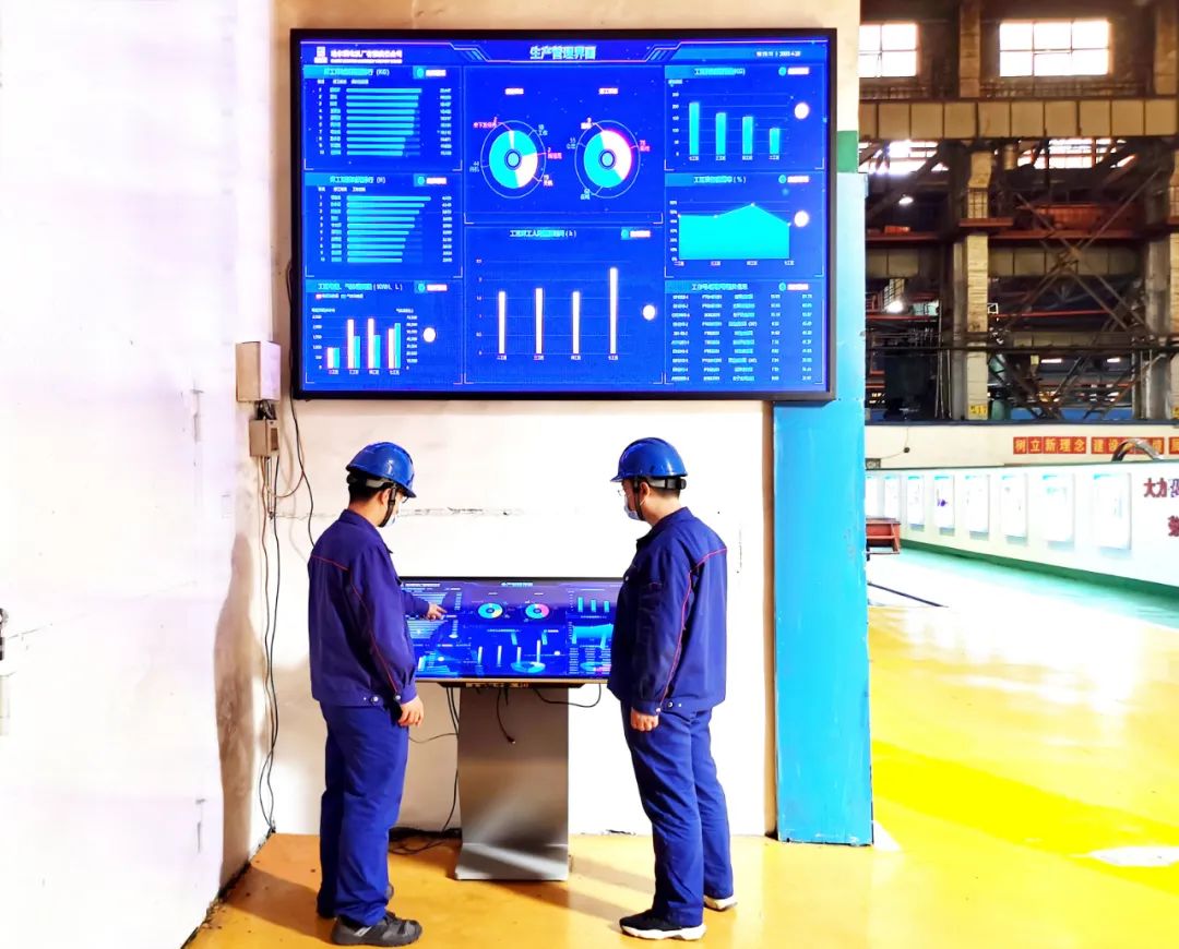 焊接工藝規(guī)范符合率、設(shè)備使用率、耗材消耗量……十幾個把控生產(chǎn)過程的關(guān)鍵數(shù)據(jù)在一塊電子屏上集中展示,成為電機公司冷作分廠質(zhì)量管控的“千里眼”“順風(fēng)耳”。