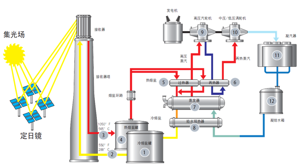 塔式太陽(yáng)能光熱發(fā)電工藝圖
