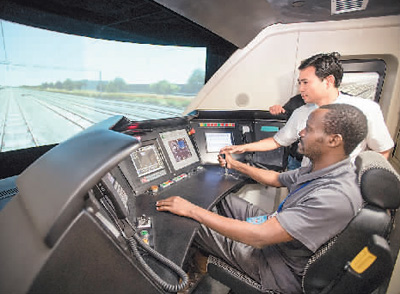 日前,來自泰國(guó)、斯里蘭卡、老撾等13個(gè)國(guó)家的63名鐵路管理人員來到武漢高鐵訓(xùn)練段進(jìn)行參訪交流活動(dòng)。在“一帶一路”背景下,2015年開始武漢高鐵訓(xùn)練段已舉辦了泰國(guó)、老撾等14批涉外鐵路技能培訓(xùn)班,培訓(xùn)涉外學(xué)員400余人次。圖為來自肯尼亞的賈斯特斯·卡洛·姆文加在高鐵模擬駕駛倉內(nèi)體驗(yàn)實(shí)際操作。 |
