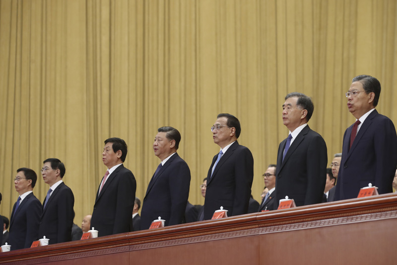 大會主席團(tuán)常務(wù)主席王東明宣布大會開幕。全體起立,高唱國歌。