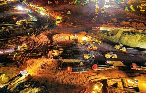 在抗擊新冠肺炎疫情過程中,國資國企聞令而動、勇挑重擔,主動服務國家防疫大局,在黨和人民最需要的時候挺身而出、不辱使命。圖為2020年1月26日,在武漢火神山醫(yī)院建設現(xiàn)場的中建三局施工人員挑燈夜戰(zhàn),實行24小時不間斷作業(yè)。國務院國資委供圖 鄧紅武/攝
