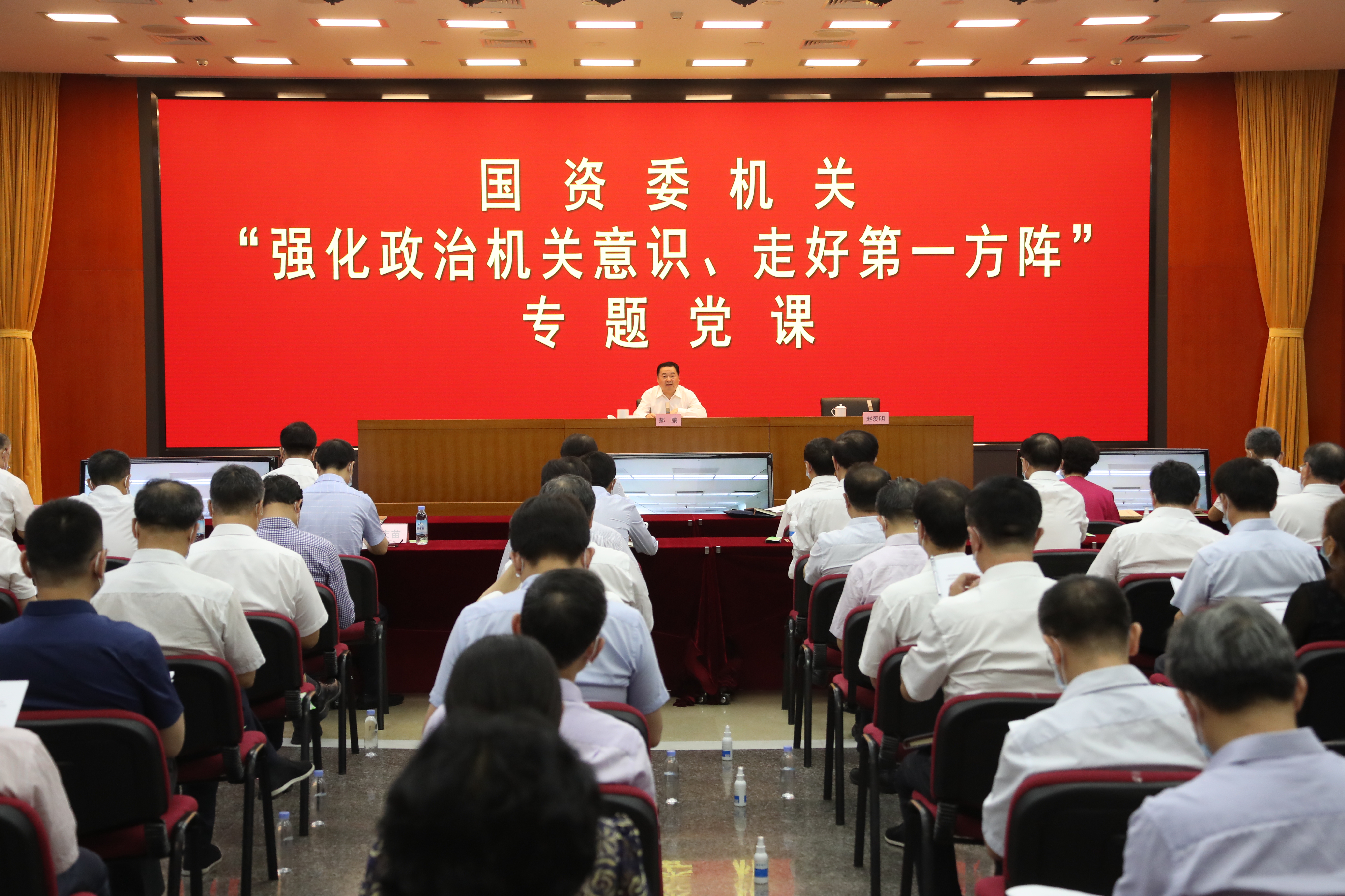 在中國共產(chǎn)黨建黨99周年之際,7月1日,國資委黨委書記、主任郝鵬以“強化政治機關(guān)意識、堅定走好第一方陣”為主題,為國資委機關(guān)全體黨員干部講專題黨課,帶領(lǐng)大家一起深入學(xué)習(xí)貫徹習(xí)近平總書記關(guān)于牢固樹立政治機關(guān)意識、加強機關(guān)黨的政治建設(shè)的重要論述精神,進一步統(tǒng)一思想、深化認識,對國資委創(chuàng)建讓黨中央放心、讓人民群眾滿意、讓中央企業(yè)信賴的模范機關(guān)進行再動員再部署。