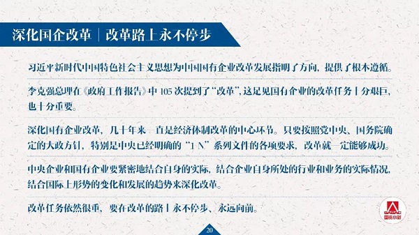 十三屆全國人大二次會(huì)議新聞中心于3月9日(星期六)15時(shí)在梅地亞中心新聞發(fā)布廳舉行記者會(huì),邀請(qǐng)國務(wù)院國資委主任肖亞慶,副主任翁杰明,秘書長、新聞發(fā)言人彭華崗就“國有企業(yè)改革發(fā)展”相關(guān)問題回答中外記者提問。本次記者會(huì)內(nèi)容豐富、亮點(diǎn)多多,重點(diǎn)內(nèi)容以20頁P(yáng)PT條分縷析,盡覽國企國資改革發(fā)展熱點(diǎn)問題答案。