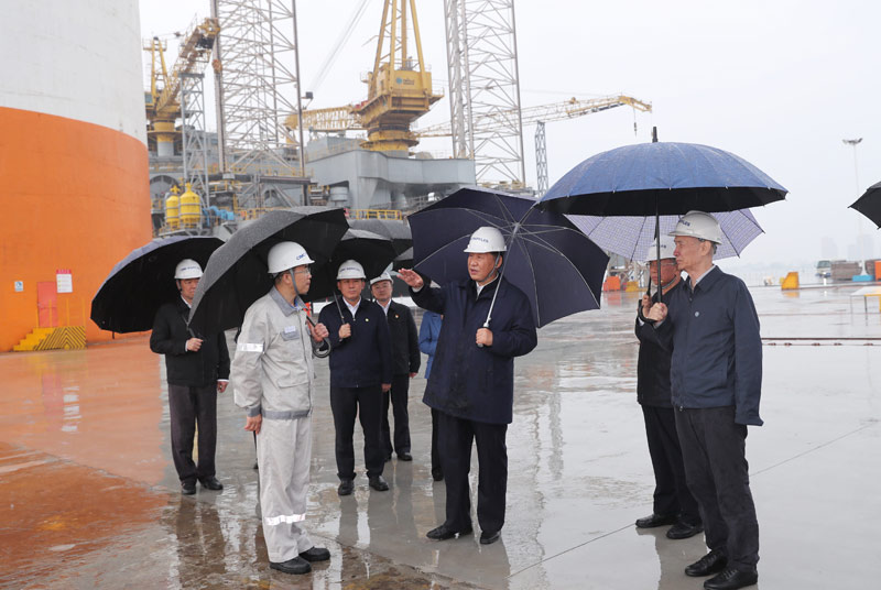 習(xí)近平冒雨考察海洋工程設(shè)備制造基地