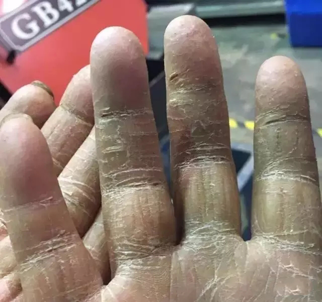 白色的掌紋千溝萬壑,像嵌著石灰。