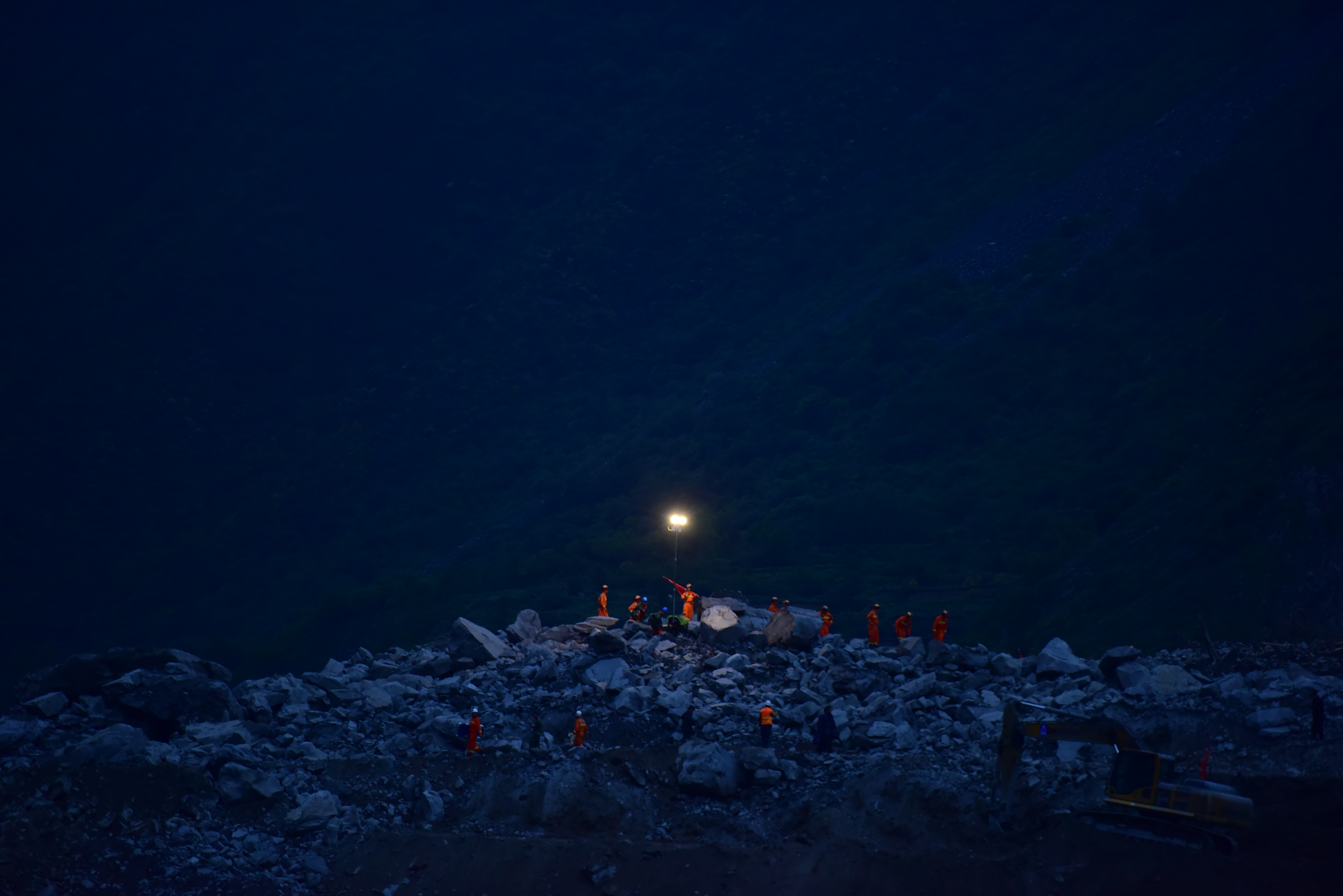 照亮了黝黑的茂縣山體垮塌救援現(xiàn)場,