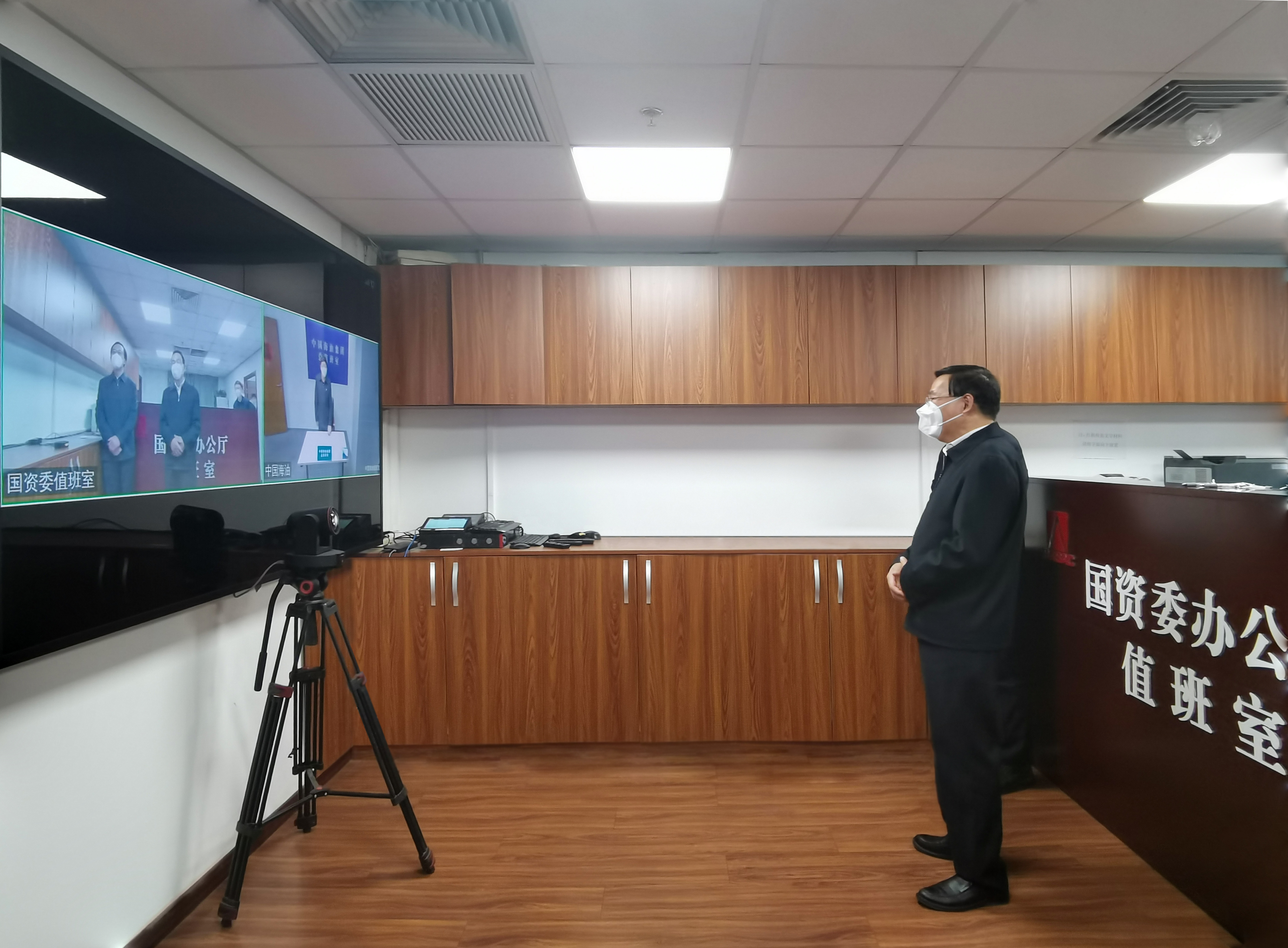 2023年1月1日,國資委黨委書記張玉卓在國資委值班室通過視頻連線方式檢查國資央企元旦假期值班工作,并慰問值班干部職工。