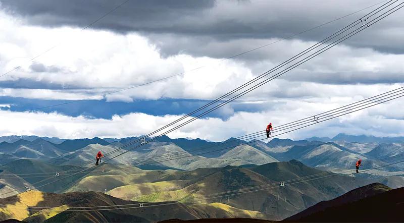 近年來(lái),中央企業(yè)把加強(qiáng)黨的領(lǐng)導(dǎo)和完善公司治理統(tǒng)一起來(lái),在維護(hù)國(guó)家戰(zhàn)略安全、保障和改善民生等方面更加擔(dān)當(dāng)作為。圖為2021年6月11日,國(guó)家電網(wǎng)四川送變電公司黨員先鋒隊(duì)員對(duì)四川省甘孜州兩河口水電站500千伏送出工程線(xiàn)路進(jìn)行消缺驗(yàn)收。 國(guó)務(wù)院國(guó)資委供圖 劉湘釩/攝