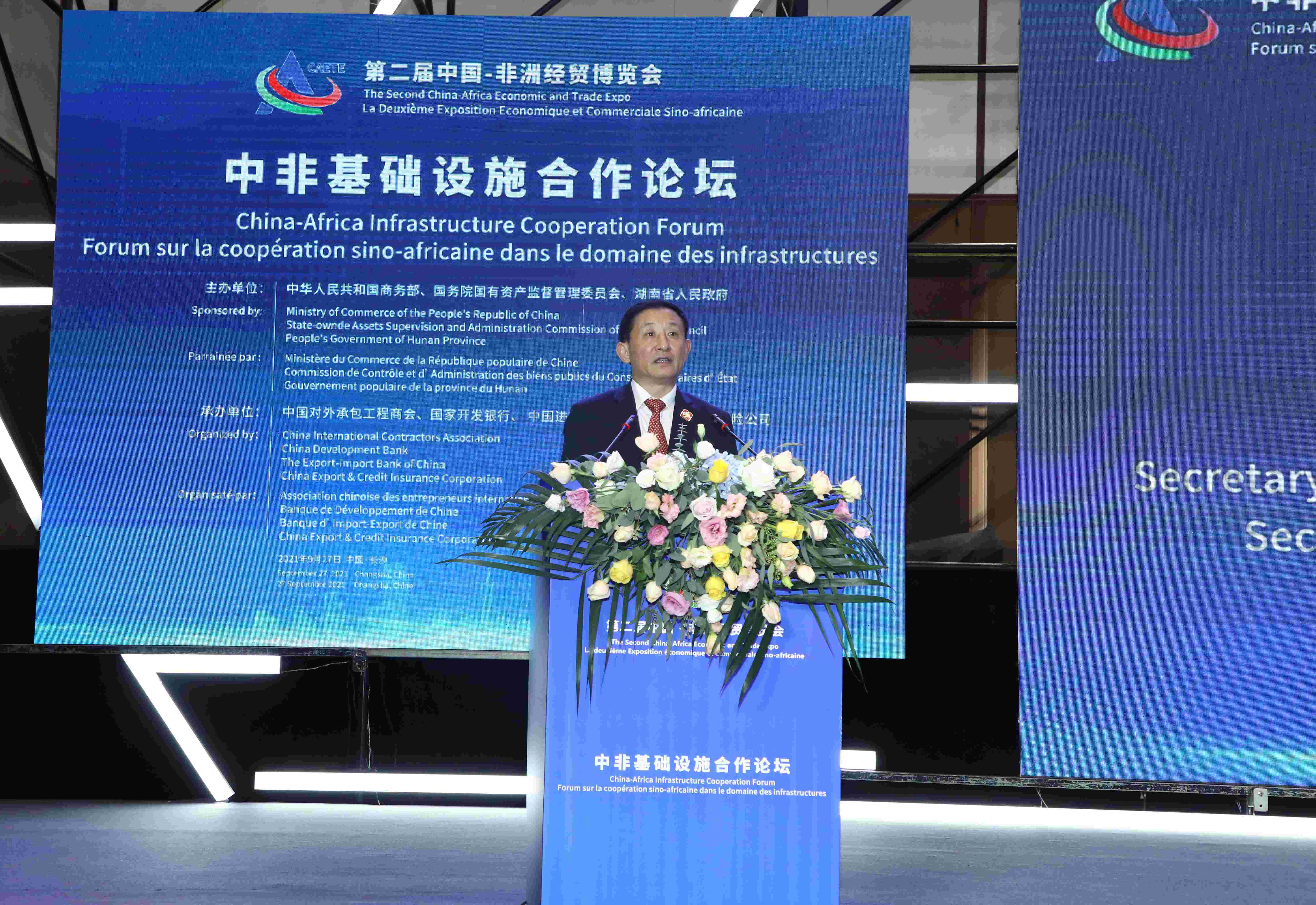 9月26日至27日,國(guó)務(wù)院國(guó)資委黨委委員、秘書(shū)長(zhǎng)彭華崗出席第二屆中國(guó)-非洲經(jīng)貿(mào)博覽會(huì)開(kāi)幕式暨中非經(jīng)貿(mào)合作論壇,并在商務(wù)部、國(guó)務(wù)院國(guó)資委、湖南省政府聯(lián)合主辦的中非基礎(chǔ)設(shè)施合作論壇致辭。