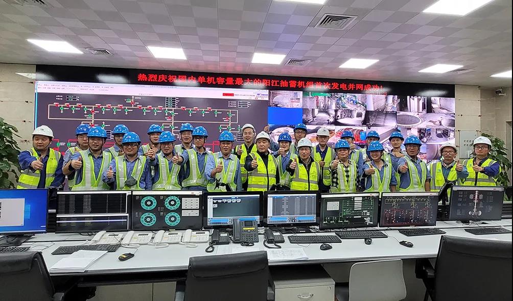 這意味著陽(yáng)江抽蓄電站建設(shè)取得了又一重要階段性成果,為貫徹落實(shí)“碳達(dá)峰、碳中和”,構(gòu)建綠色低碳循環(huán)發(fā)展經(jīng)濟(jì)體系,貢獻(xiàn)了哈電力量。哈電電機(jī)黨委副書記、總經(jīng)理劉玉強(qiáng),副總經(jīng)理陶星明與現(xiàn)場(chǎng)技術(shù)、服務(wù)人員共同見(jiàn)證了首次發(fā)電并網(wǎng)成功的時(shí)刻。