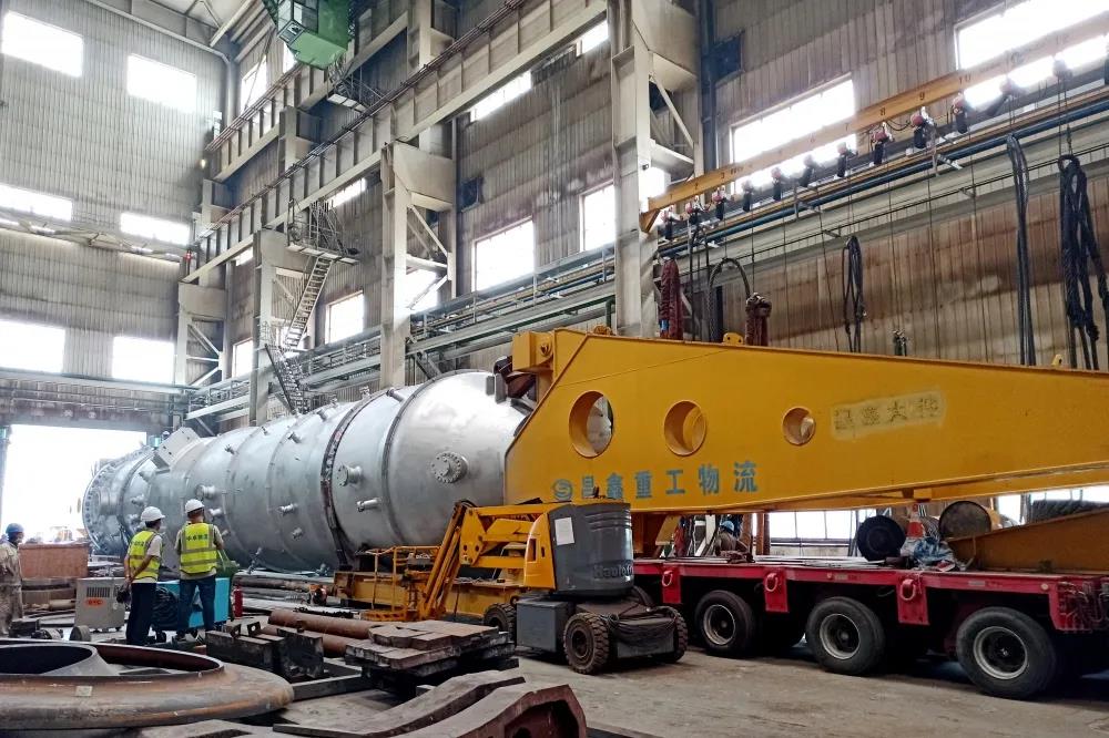 該設(shè)備總長37米,凈重約505噸,在結(jié)構(gòu)上由氣化段和廢鍋段組成,兩段通過法蘭連接。由于設(shè)備整體重量、尺寸超過運(yùn)輸限制,氣化段和廢鍋段在哈電鍋爐產(chǎn)成后,分段運(yùn)往項目現(xiàn)場進(jìn)行組裝。由于疫情原因,哈電鍋爐工程設(shè)計中心、工藝部等部門相關(guān)技術(shù)人員無法赴現(xiàn)場提供安裝技術(shù)指導(dǎo)。在現(xiàn)場安裝的關(guān)鍵階段,哈電鍋爐技術(shù)人員放棄國慶假期休息時間,主動加班,以視頻會議方式多次連線用戶方及項目現(xiàn)場,研究解決現(xiàn)場組裝的難點(diǎn)問題,確保現(xiàn)場安裝順利進(jìn)行。同時,技術(shù)人員保持手機(jī)24小時暢通,以便及時響應(yīng)用戶關(guān)切。最終,氣化段和廢鍋段于10月10日順利完成組裝。
