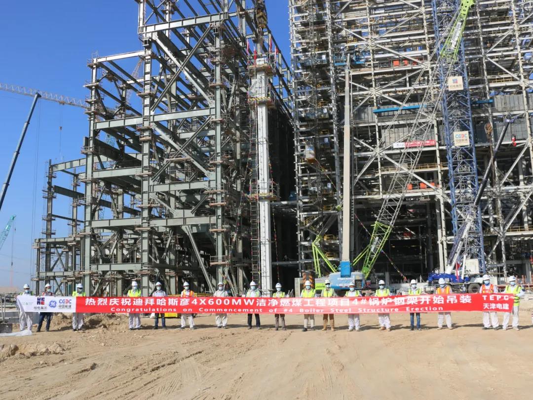 迪拜當?shù)貢r間2021年1月1日上午9時19分,哈電集團國際公司承建的迪拜哈斯彥4×600MW清潔燃煤電站項目4號鍋爐第一根鋼結(jié)構(gòu)順利吊裝就位,標志著迪拜哈斯彥項目4號鍋爐安裝工作正式開始。