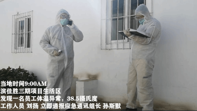 濱佳勝三期項目團隊從實際出發(fā),為應(yīng)急演練做了充分的戰(zhàn)術(shù)準(zhǔn)備,經(jīng)過周密的部署安排,應(yīng)急演練于當(dāng)?shù)貢r間3月11日上午8時30分正式開始。本次演練由日常體溫檢測、突發(fā)事件報警、接警與應(yīng)急程序啟動、潛在感染者運送就醫(yī)、密切接觸者隔離、車輛及行動軌跡消毒、事件上報及群眾安撫等8個環(huán)節(jié)組成。