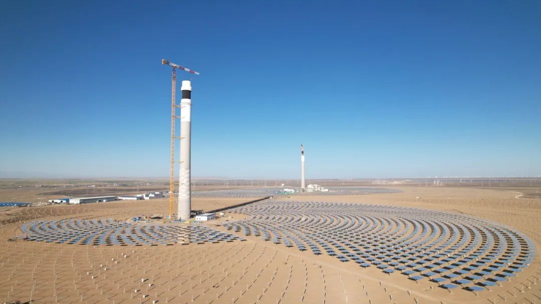 全球首個(gè)“雙塔一機(jī)”光熱儲(chǔ)能電站。