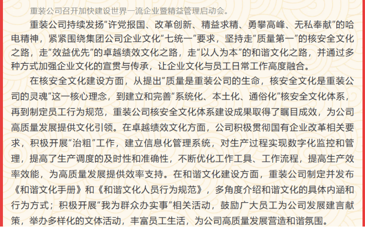 重裝公司:砥礪奮進(jìn)鑄輝煌 擔(dān)當(dāng)使命譜新篇 多措并舉邁向高質(zhì)量發(fā)展新征程