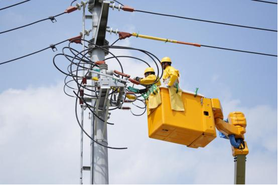 國(guó)網(wǎng)蘇州供電公司員工開(kāi)展配電線路帶電作業(yè),保障電網(wǎng)安全穩(wěn)定運(yùn)行。