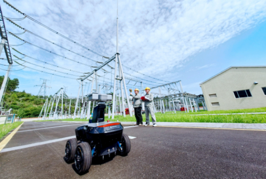 國(guó)網(wǎng)湖北電力員工運(yùn)用智能巡檢機(jī)器人在十堰市茅箭區(qū)220千伏龍虎溝變電站進(jìn)行設(shè)備巡視。