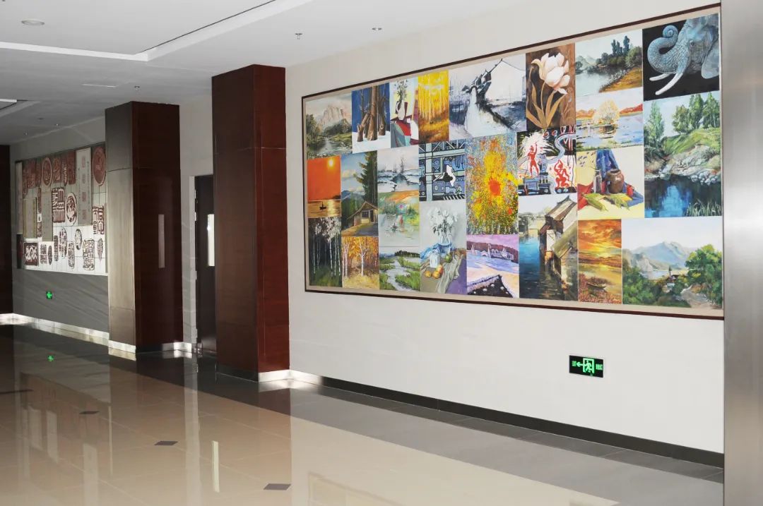 協(xié)會組織職工創(chuàng)作的油畫、印章等作品。