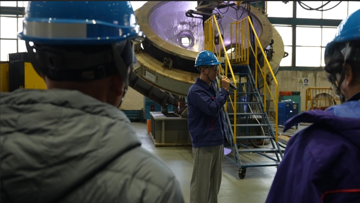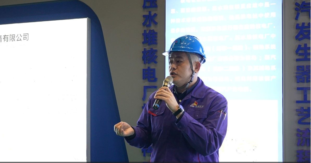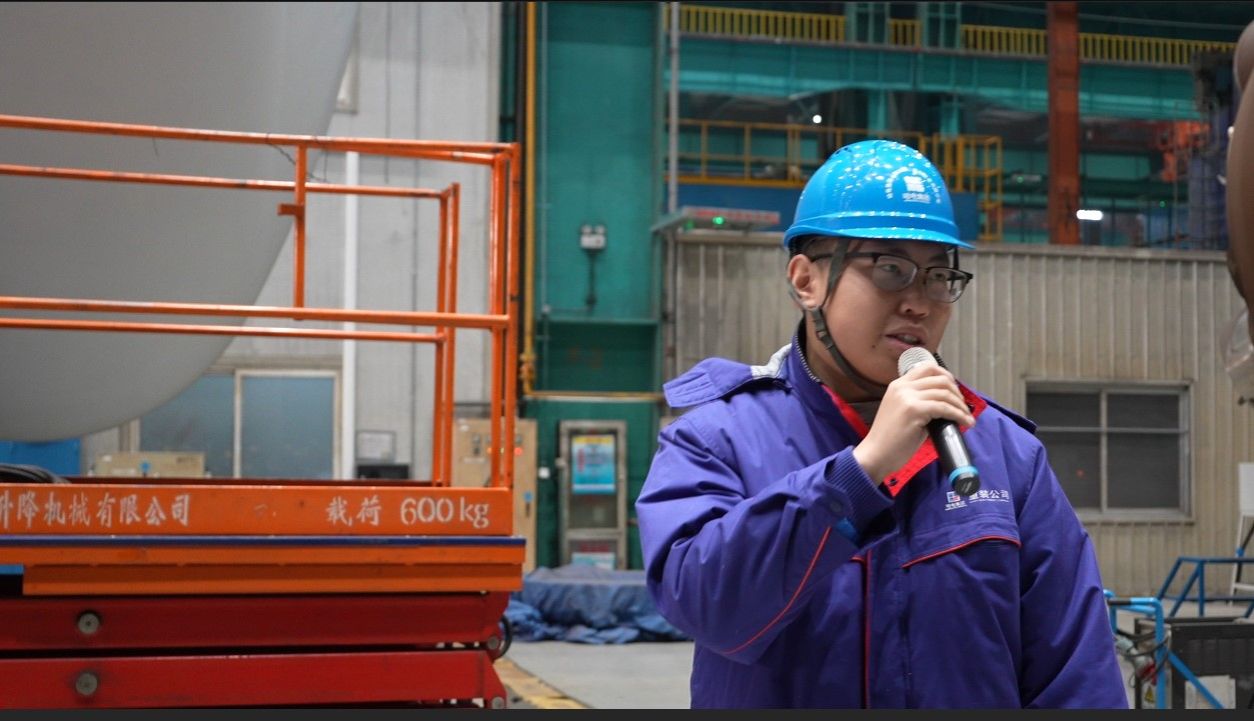 現場參觀時,丁道復介紹了公司歷史和典型產品,生產制造部團總支第一支部書記高靖博介紹了焊接設備和焊接后的檢驗處理工作,生產制造部團總支機加團支部書記劉方舟介紹了機加設備和加工產品,項目聯合團支部書記韓兆明介紹了三門4號蒸汽發(fā)生器的特點和功能。