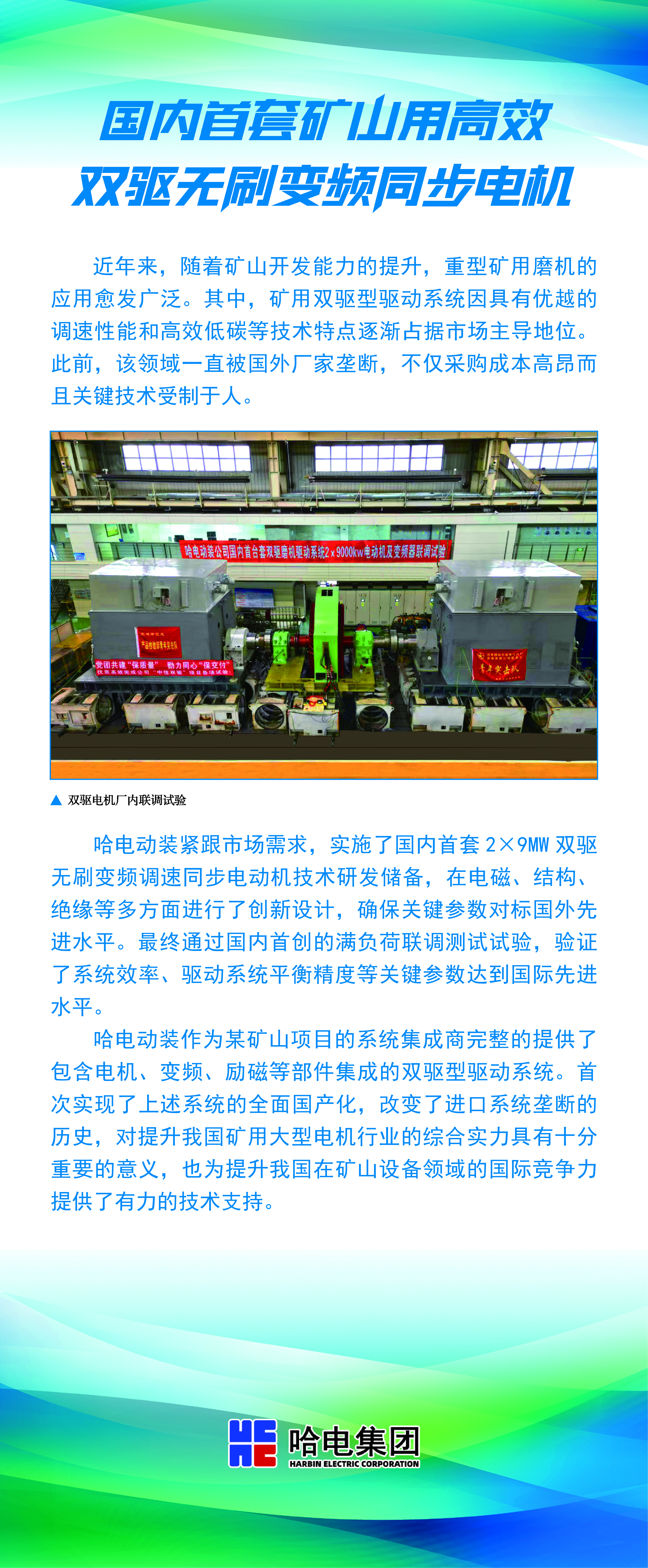 國(guó)內(nèi)首套礦山用高效雙驅(qū)無(wú)刷變頻同步電機(jī)
