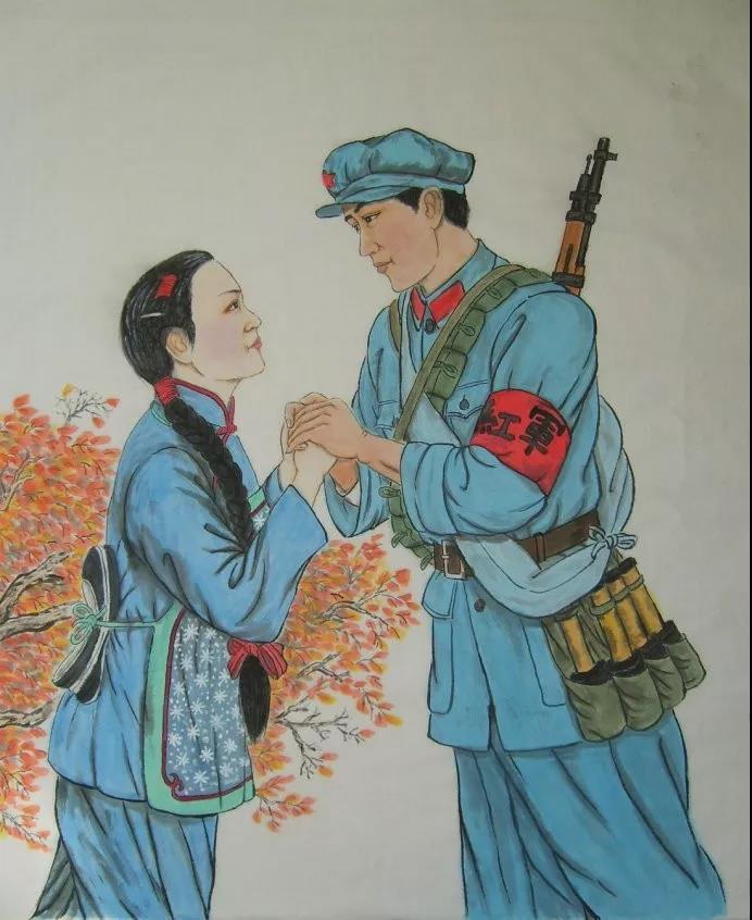 十送紅軍,滿腹酸楚。夫妻一別,不知來日。這位愛唱山歌的村婦,甜美的歌聲漸漸變低沉了,她一直信守著男人那句低低的“等我回來”的約定。戰(zhàn)斗不斷,傷亡不止,一天兩天,沒有蹤影,十天半月,沒有音訊,女人的心在煎熬,在等待;紅軍走了,白軍來了,把紅軍家屬的她打得皮開肉綻、死去活來,她在等;勝利了,解放了,同村的戰(zhàn)友玩伴回來了,男人還是音訊杳無,她在等;組織上派人捎來話,說她的男人在長征途中犧牲了,她依然在等。她執(zhí)拗地相信,她的紅軍男人沒有死,會忽然回家來找她,怕男人找不到家門,女人幾乎天天向男人離家的路口眺望。從青絲明眸到白發(fā)老眼,直到望穿雙眼,兩目失明,她還在等;一聽說村里來了客人,她都要湊上去,把她男人的名字說一遍,把心里久積的思念說一遍,把重復(fù)了不知道多少次的請求,再說一遍。從小女子到老女人,她不但在等,還一面埋怨、數(shù)落、嗔怪,一面想著男人那雙笨腳的模樣,編織草鞋,等他回來試腳……