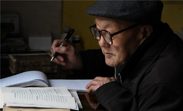 張富清在家看書學(xué)習(xí)(3月31日攝)。新華社記者 程敏 攝