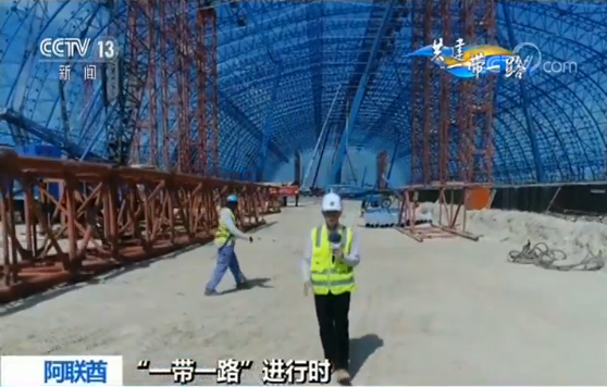 央視記者 李大杰:我身后在建的就是哈斯彥清潔燃煤電站項目一號儲煤場,大家千萬不要小看這座儲煤場,因為它正在創(chuàng)造一項不大不小的世界紀錄。在它建成之后,它將成為世界上同類電站當(dāng)中,單體面積最大的儲煤場。面積有多大呢?給大家兩組數(shù)據(jù):第一就是它的面積是在83000平方米左右,這個面積相當(dāng)于12座標準足球場的面積;第二它整個的用鋼量是在8100噸左右,這相當(dāng)于一座巴黎的埃菲爾鐵塔。